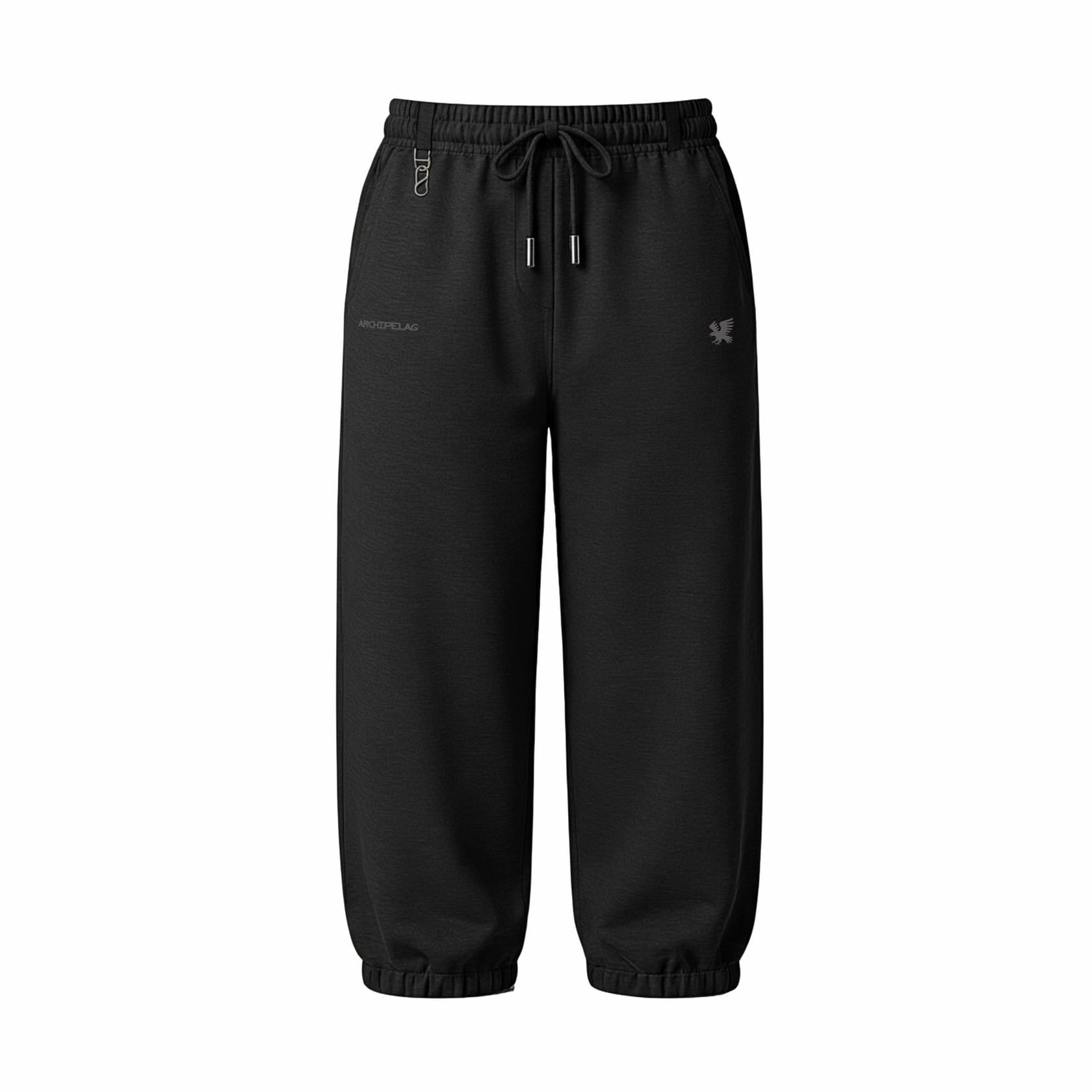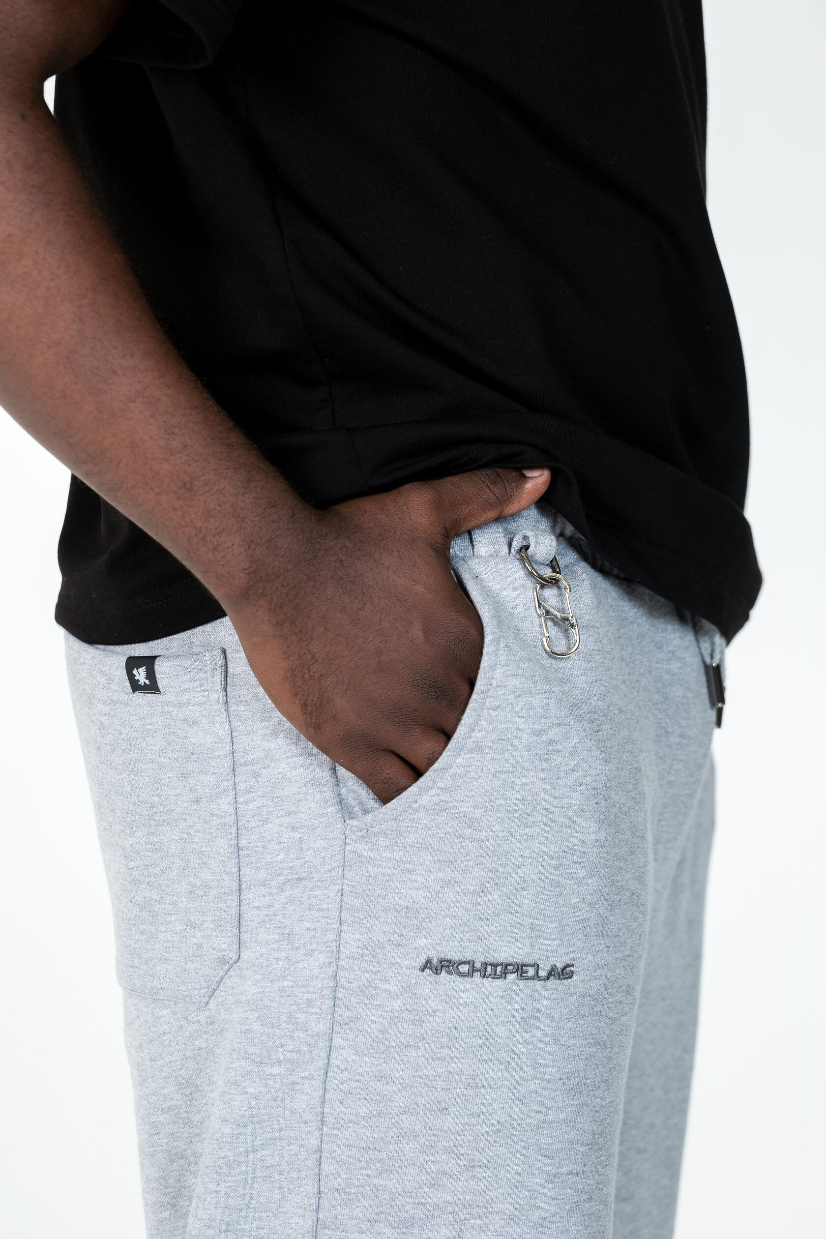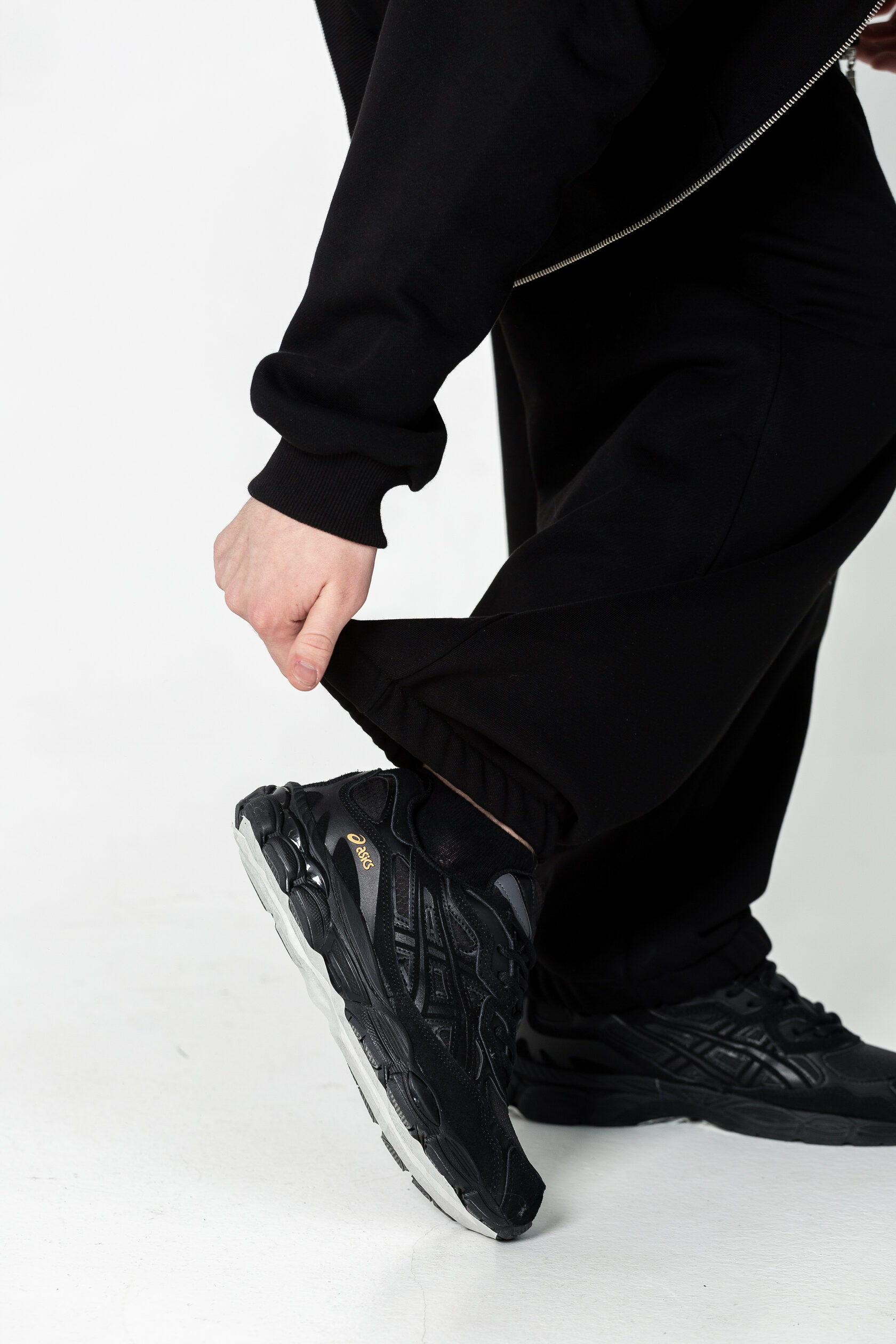 Штаны из хлопкового футера 470 г/м². Украшен объемной вышивкой с фирменными логотипами. Материал — 100% хлопок, с гладкой лицевой стороной и мягким внутренним петельчатым слоем, обеспечивающим комфорт и тепло. Прямой свободный крой, эластичный пояс со шнурками, манжеты на расслабленной резинке по низу штанин для их устойчивости на кроссовках в движении, боковые карманы, шлевки для ремня, петля для карабина.