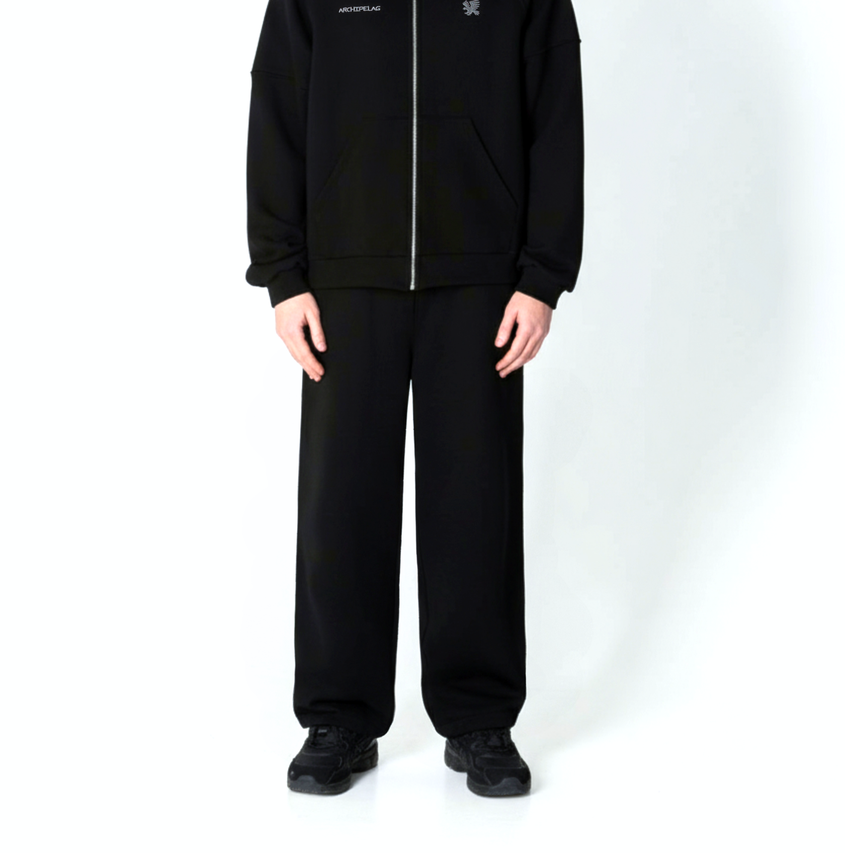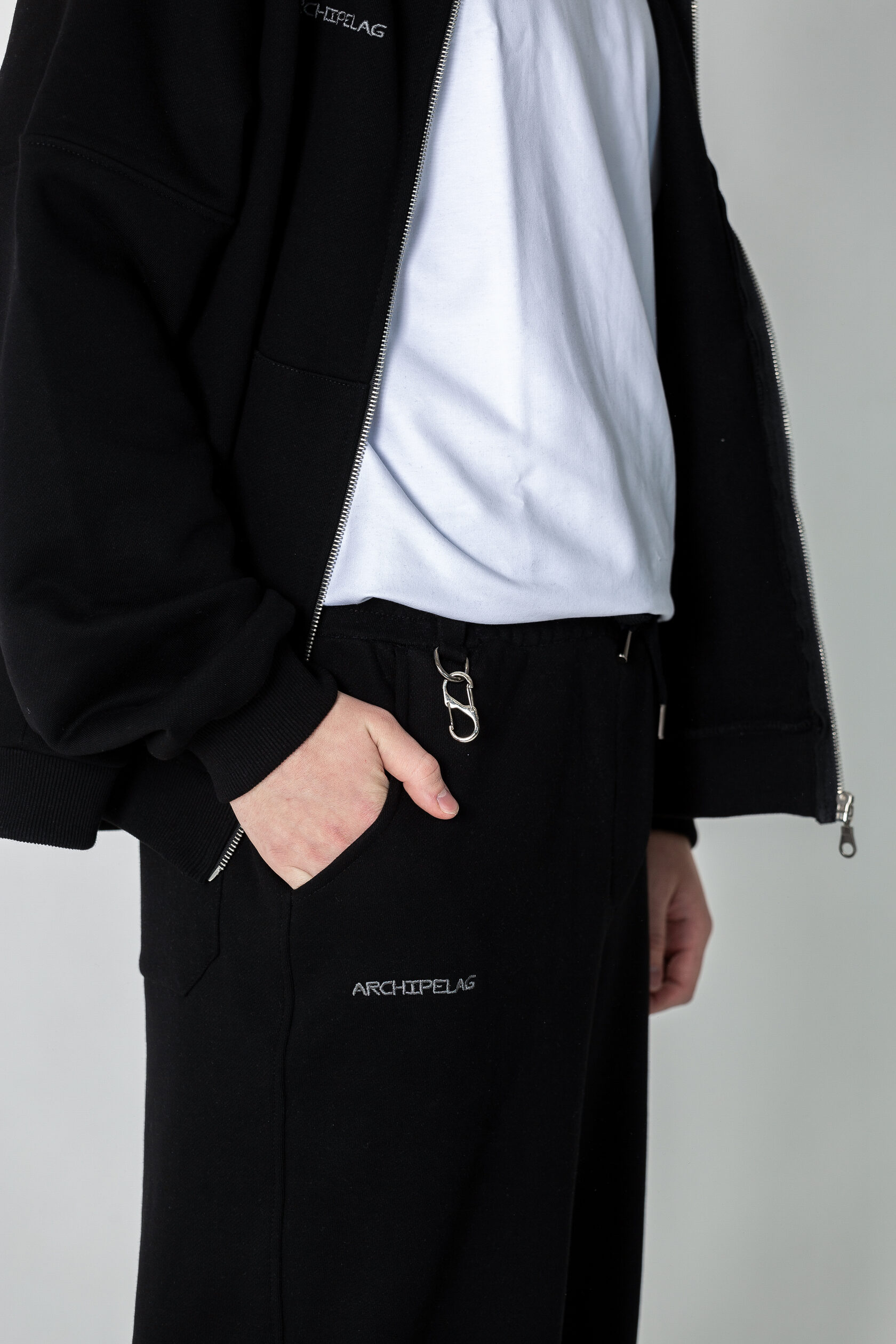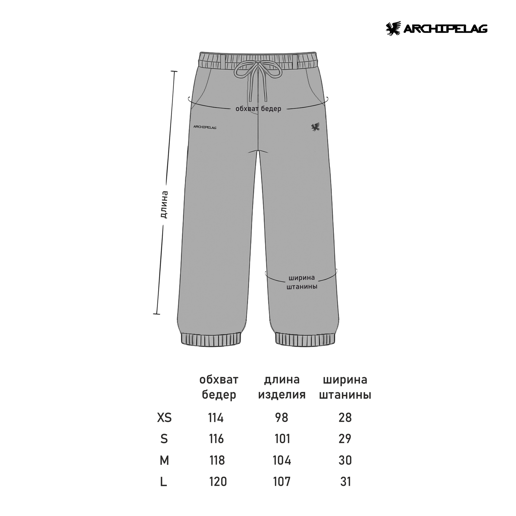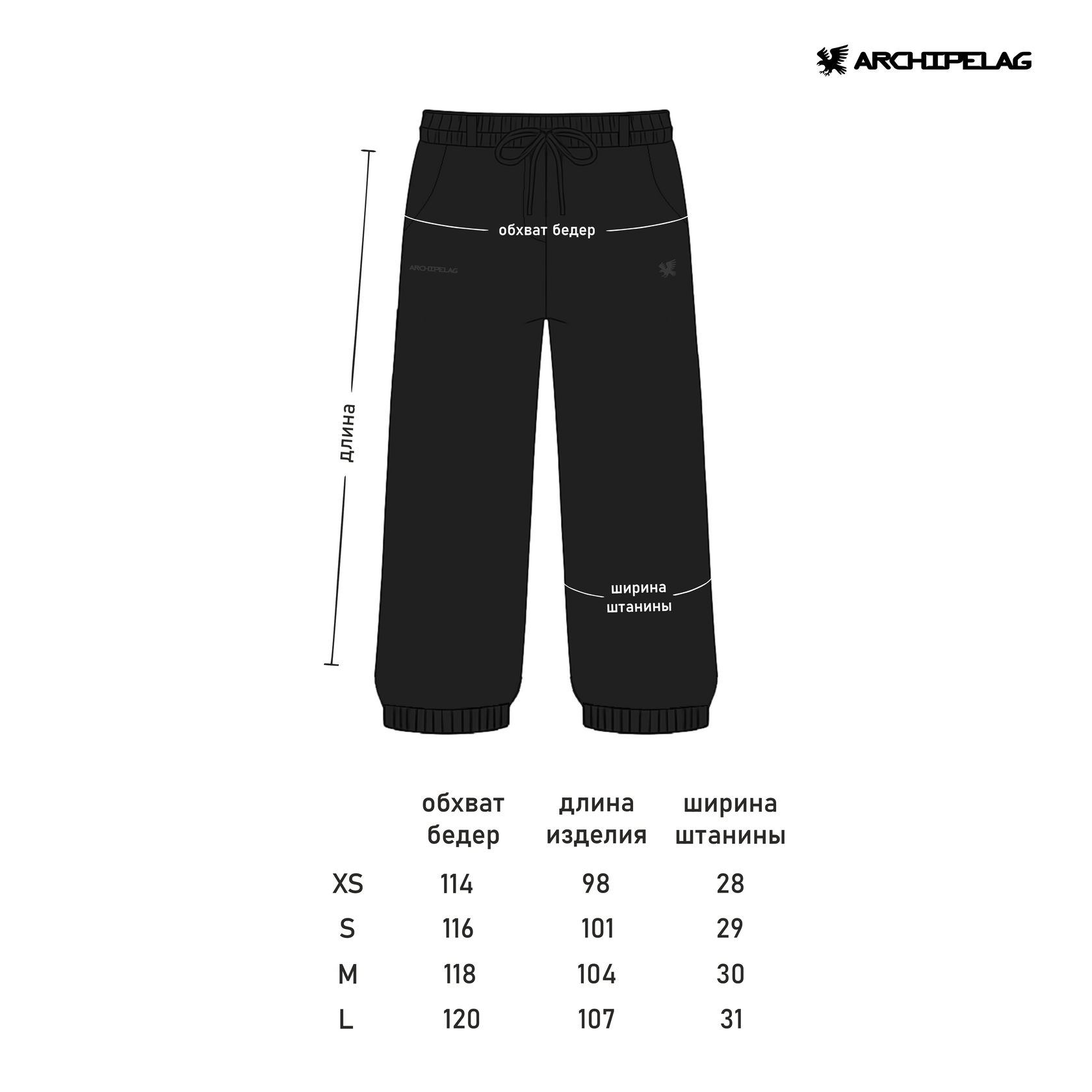Штаны из хлопкового футера 450 г/м². Украшен объемной вышивкой с логотипами. Материал — 100% хлопок, с гладкой лицевой стороной и мягким внутренним петельчатым слоем, обеспечивающим комфорт и тепло. Прямой свободный крой, эластичный пояс со шнурками, манжеты на расслабленной резинке по низу штанин для их устойчивости на кроссовках в движении, боковые карманы, шлевки для ремня, петля для карабина.