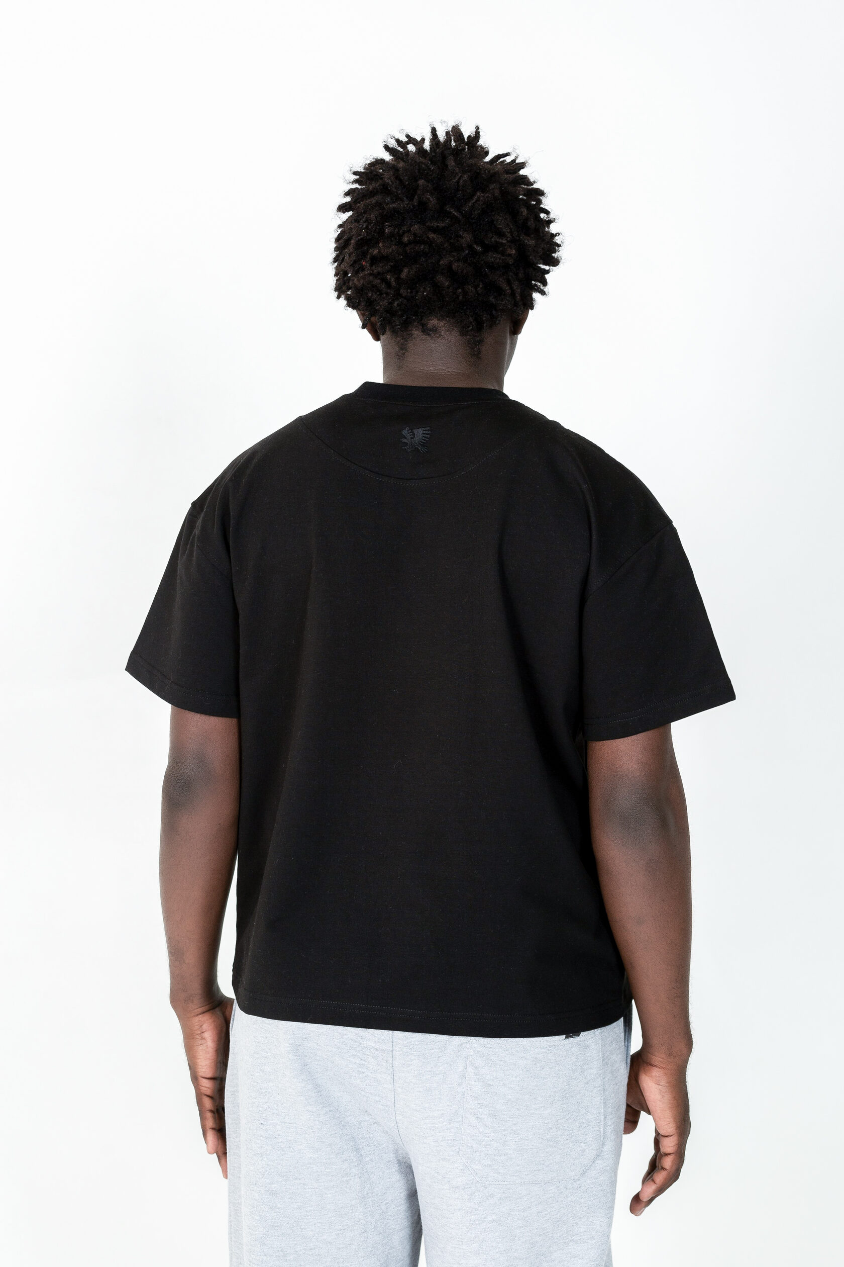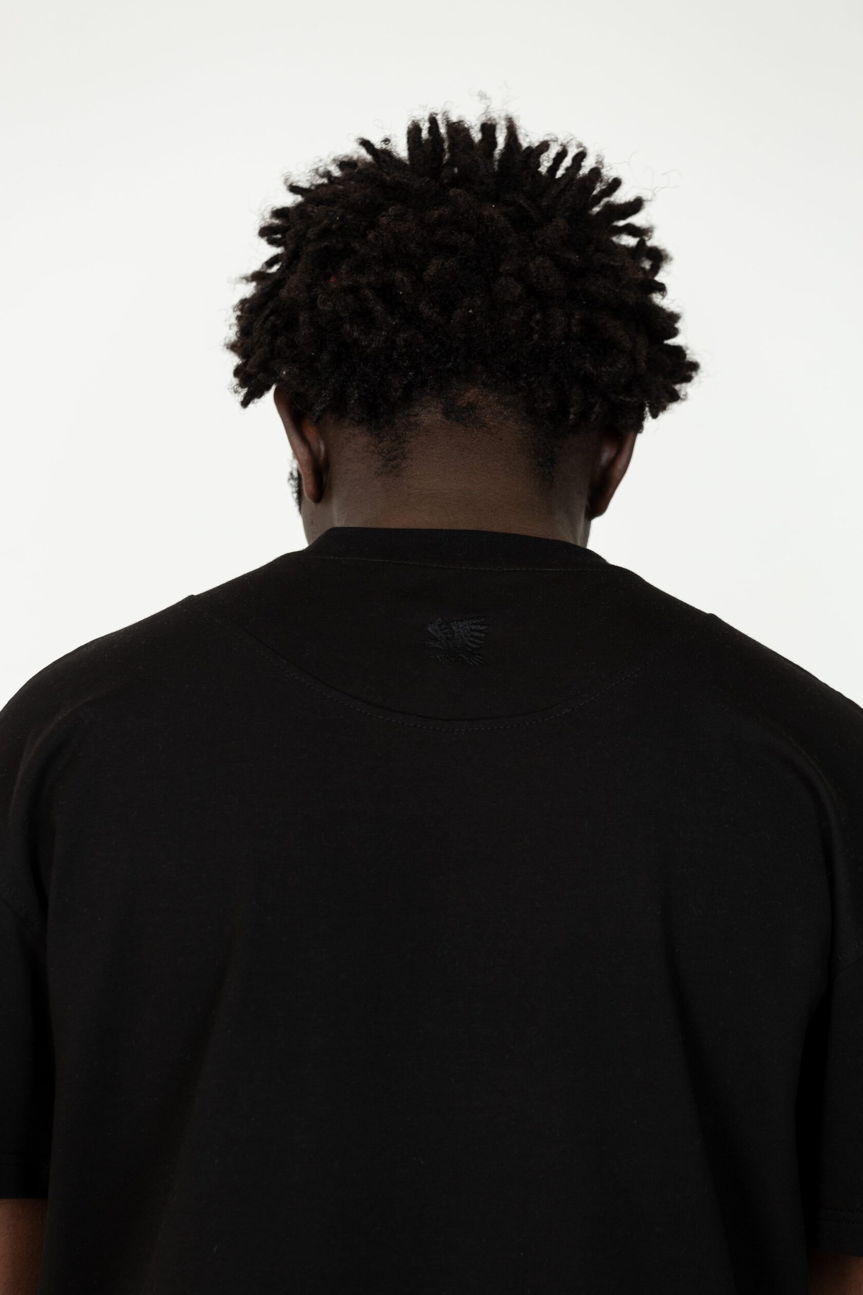Оверсайз футболка из натурального хлопка футер плотностью 250 г/м². Свободный крой, заимствованный у модели Stone Island — широкие линии, удлинённые рукава и достаточная длина для расслабленной посадки. Обьемная черная вышивка спереди и сзади в цвет футболки. Материал — 95% хлопок / 5% лайкра, мягкий, прочный, удерживает форму и сохраняет плотность после сотни стирок.